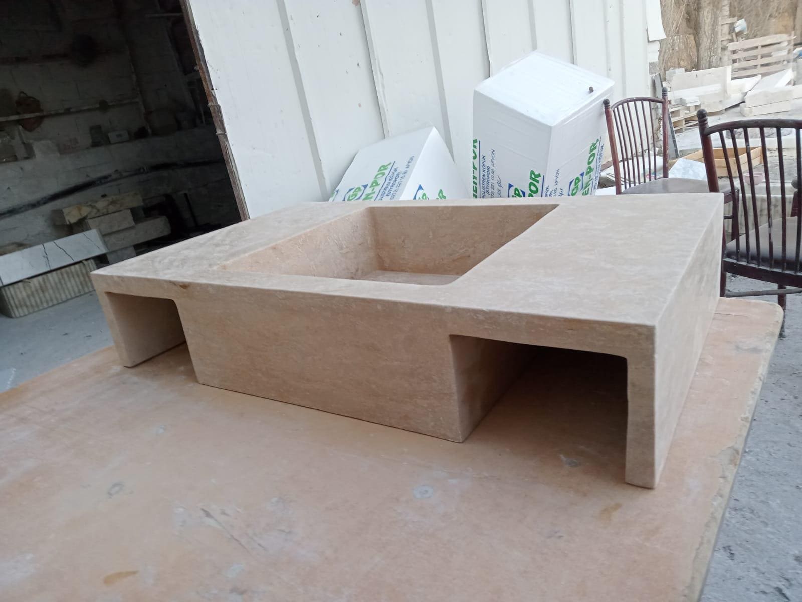 • Every piece of sink is carved from a single piece of natural stone.